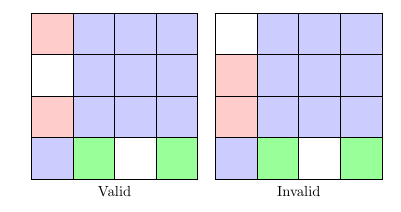 We have a n × n board. We want to colour the board so that each coloured block is m × m, where m ≤ n and blocks of the same colour cannot share an edge. However, they can share a corner. Examples are as follows: